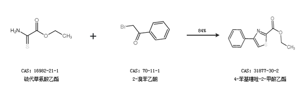 1.通過硫代草氨酸乙酯和2-溴苯乙酮合成4-苯基噻唑-2-甲酸乙酯,收率約84%;