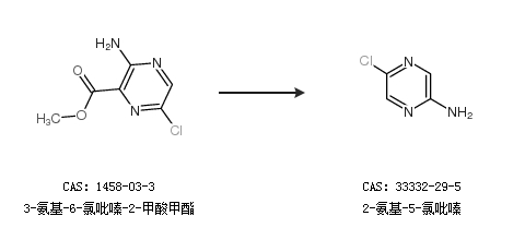 2.通過3-氨基-6-氯吡嗪-2-甲酸甲酯合成2-氨基-5-氯吡嗪