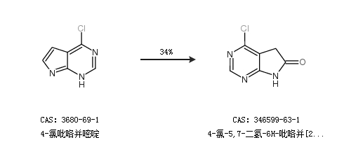1.通過4-氯吡咯并嘧啶合成4-氯-5,7-二氫-6H-吡咯并[2,3-D]嘧啶-6-酮,收率約34%;