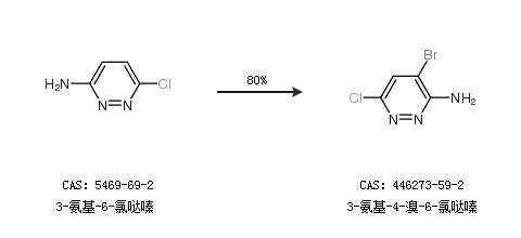 1.通過(guò)3-氨基-6-氯噠嗪合成3-氨基-4-溴-6-氯噠嗪,收率約80%;