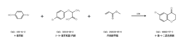 2.通過4-溴苯酚、2-(4-溴苯氧基)丙酸和丙烯酸甲酯合成6-溴-4-二氫色原酮,收率約13%;