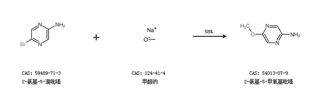 1.通過(guò)甲醇鈉和2-氨基-5-氯吡嗪合成2-氨基-5-甲氧基吡嗪,收率約67%;