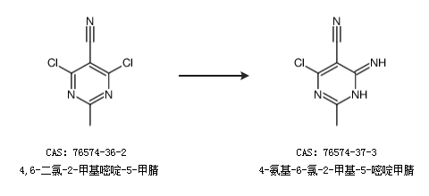 1.通過(guò)4,6-二氯-2-甲基嘧啶-5-甲腈合成4-氨基-6-氯-2-甲基-5-嘧啶甲腈