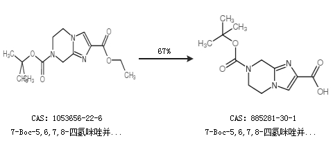 1.通過(guò)7-Boc-5,6,7,8-四氫咪唑并[1,2-a]吡嗪-2-甲酸乙酯合成7-Boc-5,6,7,8-四氫咪唑并[1,2-a]吡嗪-2-甲酸,收率約67%;