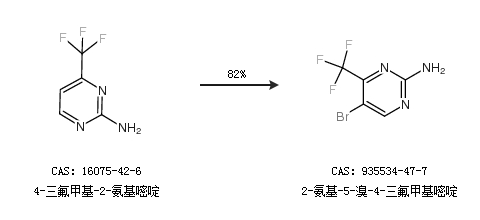 1.通過4-三氟甲基-2-氨基嘧啶合成2-氨基-5-溴-4-三氟甲基嘧啶,收率約82%;