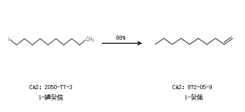 2.通過(guò)1-碘癸烷合成1-癸烯,收率約88%;