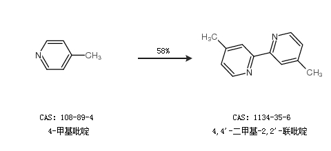 2.通過4-甲基吡啶合成4,4''-二甲基-2,2''-聯(lián)吡啶,收率約58%;