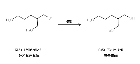 1.通過2-乙基己基溴合成異辛硫醇,收率約65%;