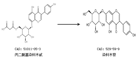 帶黃色針狀晶體(由稀乙醇重結(jié)晶),熔點265℃,不溶于水,稍溶于熱水,遇三氯化鐵,先呈血紅色,后變紅紫色,以醇態(tài)稀鹽酸于熱時進行水解;得異染料木黃酮及1分子葡萄糖,本品為存在于大豆Soya hispi-da中的一種異黃酮苷,由萃取而得,用作試劑。