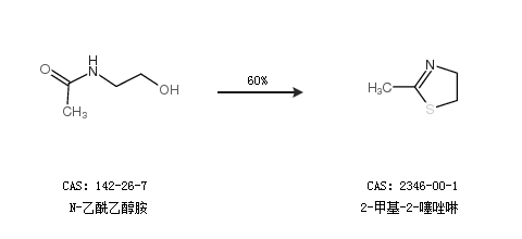 2.通過N-乙酰乙醇胺合成2-甲基-2-噻唑啉,收率約60%;