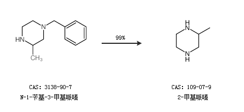 1.通過(guò)N-1-芐基-3-甲基哌嗪合成2-甲基哌嗪,收率約99%;