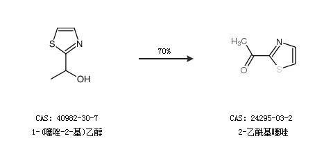 2.通過1-(噻唑-2-基)乙醇合成2-乙?;邕颍章始s70%;