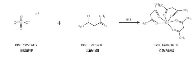 1.通過(guò)高錳酸鉀和乙酰丙酮合成乙酰丙酮錳,收率約84%;