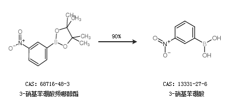 1.通過(guò)3-硝基苯硼酸頻哪醇酯合成3-硝基苯硼酸,收率約90%;