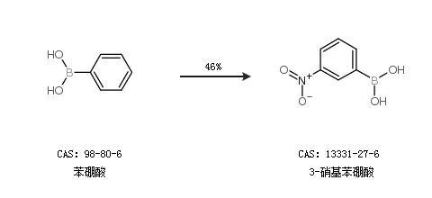 2.通過(guò)苯硼酸合成3-硝基苯硼酸,收率約46%;