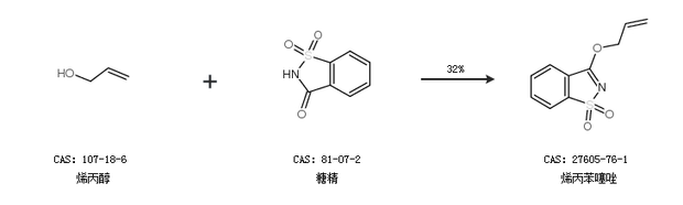 1.通過烯丙醇和糖精合成烯丙苯噻唑,收率約32%;