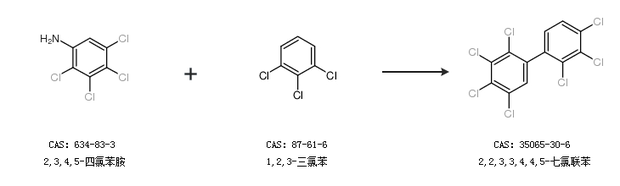 2.通過2,3,4,5-四氯苯胺和1,2,3-三氯苯合成2,2,3,3,4,4,5-七氯聯(lián)苯