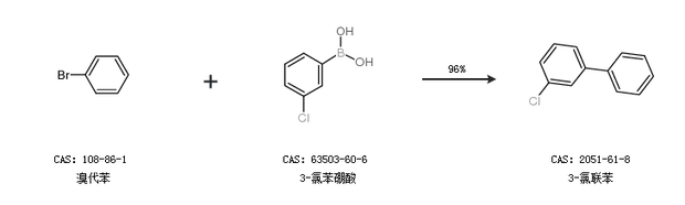 2.通過溴代苯和3-氯苯硼酸合成3-氯聯(lián)苯,收率約96%;