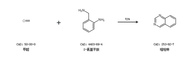 1.通過甲醛和2-氨基芐胺合成喹唑啉,收率約72%;