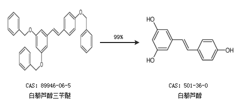 2.通過白藜蘆醇三芐醚合成白藜蘆醇,收率約99%;