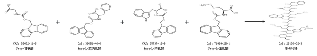 1.通過Fmoc-甘氨酸、Fmoc-L-苯丙氨酸、Fmoc-L-色氨酸和Fmoc-L-蛋氨酸合成辛卡利特