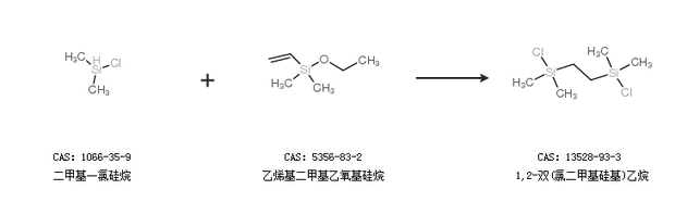 2.通過二甲基一氯硅烷和乙烯基二甲基乙氧基硅烷合成1,2-雙(氯二甲基硅基)乙烷