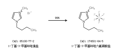 1.通過1-丁基-3-甲基咪唑溴鹽合成1-丁基-3-甲基咪唑六氟磷酸鹽,收率約99%;