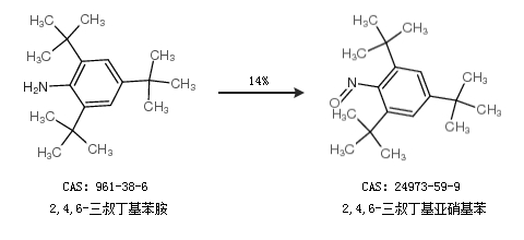 2.通過2,4,6-三叔丁基苯胺合成2,4,6-三叔丁基亞硝基苯,收率約14%;