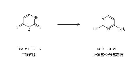 英文別名 2-THIOCYTOSINE;Cytosine,2-thio;6-AMino-2-pyriMidinethione;THIOCYTOSINE;4-Amino-6-mercaptopurine;Cytosine,thio;4-Amino-2-mercaptopyrimidine;2-mercapto-4-Aminopyrimidine;4-aminopyrimidine-2-thiol;4-AMINO-2-THIOPYRIMIDINE;4-AMinothio-2-pyriMidinone;4-aminopyrimidine-2-thione;4-amino-2-pyrimidine-thiol;