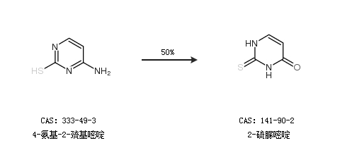 1.通過4-氨基-2-巰基嘧啶合成2-硫脲嘧啶,收率約50%;