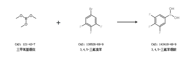 1.通過三甲氧基硼烷和3,4,5-三氟溴苯合成3,4,5-三氟苯硼酸