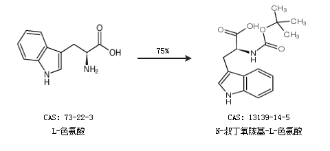 1.通過L-色氨酸合成N-叔丁氧羰基-L-色氨酸,收率約99%;