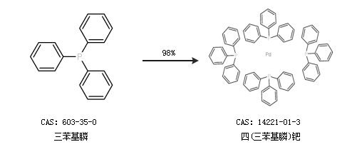 1.通過三苯基膦合成四(三苯基膦)鈀,收率約98%;