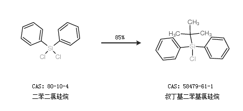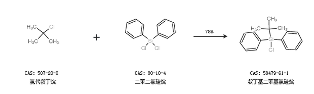 1.通過氯代叔丁烷和二苯二氯硅烷合成叔丁基二苯基氯硅烷,收率約78%;