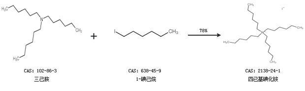 1.通過(guò)三己胺和1-碘己烷合成四已基碘化銨,收率約78%;