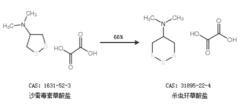 1.通過沙蠶毒素草酸鹽合成殺蟲環(huán)草酸鹽,收率約66%;
