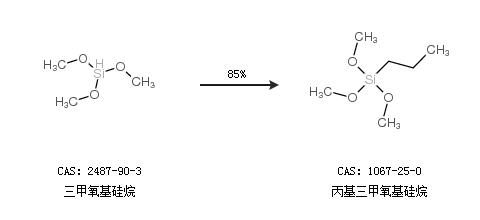 1.通過(guò)三甲氧基硅烷合成丙基三甲氧基硅烷,收率約85%;