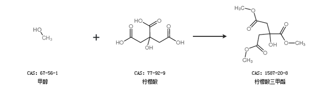 1.通過甲醇和檸檬酸合成檸檬酸三甲酯,收率約10%;