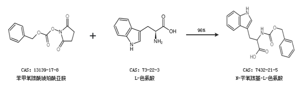 2.通過(guò)苯甲氧羰酰琥珀酰亞胺和L-色氨酸合成N-芐氧羰基-L-色氨酸,收率約96%;