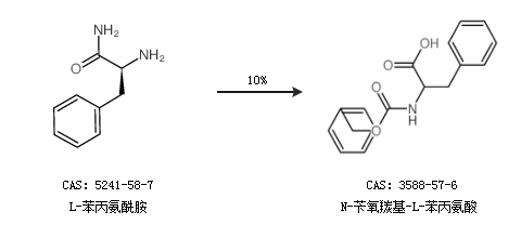 2.通過L-苯丙氨酰胺合成N-芐氧羰基-L-苯丙氨酸,收率約10%;