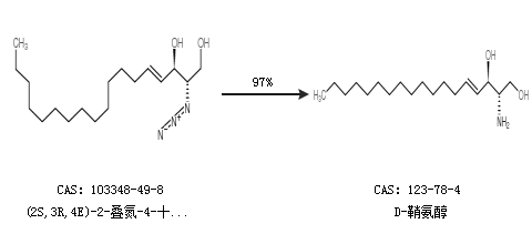 1.通過(guò)(2S,3R,4E)-2-疊氮-4-十八碳烯-1,3-二醇合成D-鞘氨醇,收率約97%;