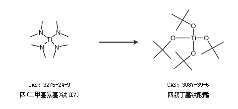 1.通過(guò)四(二甲基氨基)鈦(IV)合成四叔丁基鈦酸酯