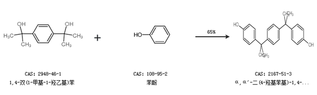 1.通過1,4-雙(1-甲基-1-羥乙基)苯和苯酚合成α,α''-二(4-羥基苯基)-1,4-二異丙基苯,收率約65%;