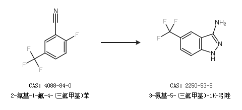 2.通過2-氰基-1-氟-4-(三氟甲基)苯合成3-氨基-5-(三氟甲基)-1H-吲唑
