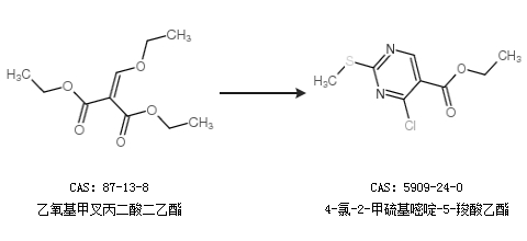 中文別名 4-氯-2-甲基硫基-嘧啶-5-羧酸乙酯;2-甲硫基-4-氯嘧啶-5-甲酸乙酯;4- 氯-2-甲基硫代嘧啶-5-羧酸乙酯;4-氯-2-(甲硫基)嘧啶-5-甲酸乙酯;2-甲硫基-4-氯嘧啶-5-羧酸乙酯;乙基4-氯-2-(甲基硫代)嘧啶-5-甲酯;4-氯-2-(甲硫基)嘧啶-5-甲酸;2-甲硫基-4-氯-嘧啶-羧酸乙脂;4-氯-2-甲基硫代嘧啶-5-羧酸乙酯;2-甲硫基-4-氯-5-嘧啶甲酸乙酯;