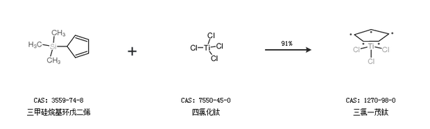 2.通過(guò)三甲硅烷基環(huán)戊二烯和四氯化鈦合成三氯一茂鈦,收率約91%;