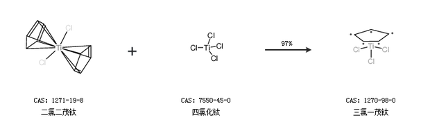 1.通過(guò)二氯二茂鈦和四氯化鈦合成三氯一茂鈦,收率約97%;