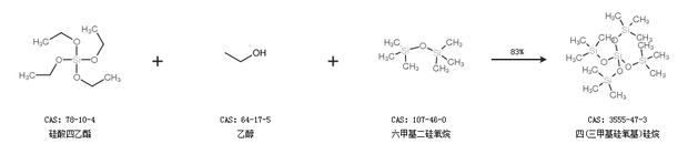 2.通過硅酸四乙酯、乙醇和六甲基二硅氧烷合成四(三甲基硅氧基)硅烷,收率約83%;