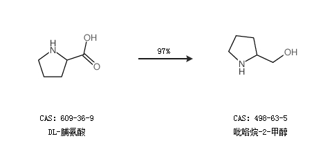 1.通過DL-脯氨酸合成吡咯烷-2-甲醇,收率約97%;
