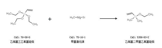 2.通過(guò)乙烯基三乙氧基硅烷和甲基溴化鎂合成乙烯基二甲基乙氧基硅烷